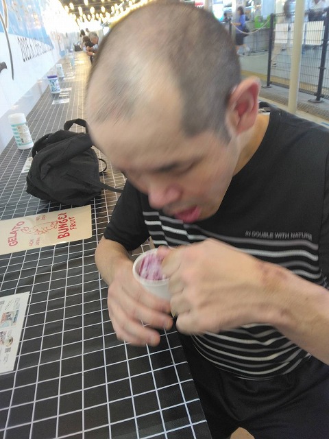 次は、やはりホーム内にあるスイーツのお店で、ブルーベリーのジェラートを、またまた気もそぞろで食べ、自販機で好きなカフェオレを2本買い、飲み干し、満足満足の小旅を楽しみました。