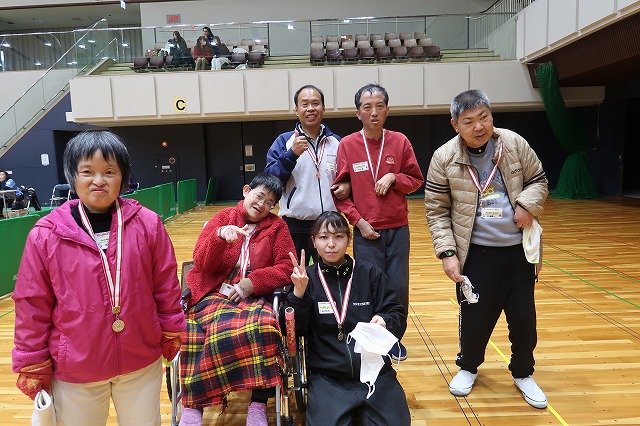 途中までは、今年も完敗ムードでしたが、利用者さんの投げたボールが見事逆転を呼ぶショットで女性チームは、なんと!銀メダルの準優勝!。