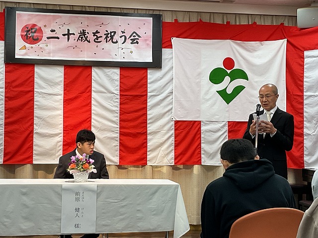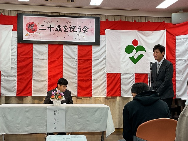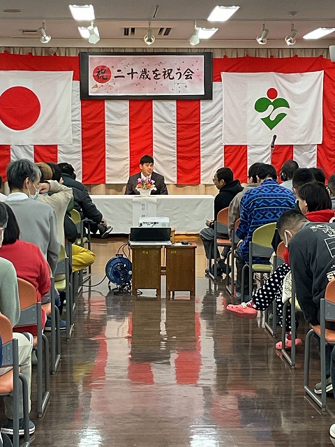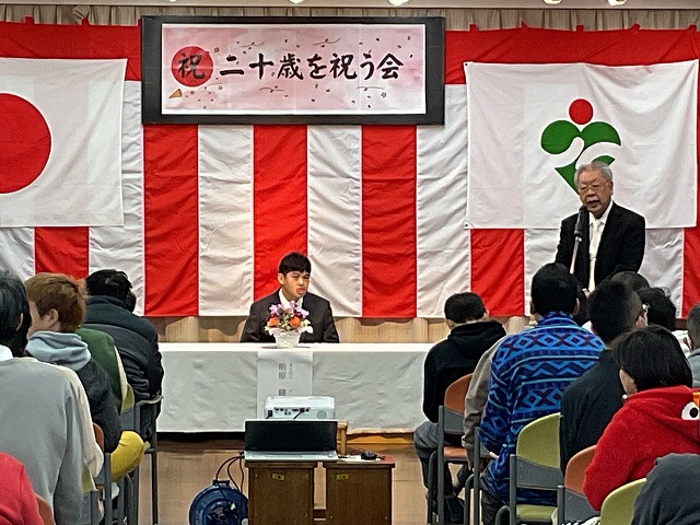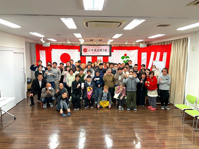 2026年1月15日 / 最終更新日 : 2026年1月15日 ぬくもり福祉会 ぬくもりワークス 二十歳を祝う会 今週の成人の日、12日月曜日は、前原健人さんの「二十歳を祝う会」でした!! 照れ屋の健人さん。皆の注目が集まる中、入場です。 来賓の長谷部理事長、赤松町内会会長岡田様、保護者会会長藤田様より、祝辞をいただきました。 先輩の利用者さんから花束をいただいて、嬉しそうな健人さん。 最後はみんなで記念撮影!! 健人さん!お母様と掲げた「失敗してもいい。色んなことに挑戦していこう!」を目標に、これからもぬくもりワークスで頑張っていきましょうね! FacebookXBluesky